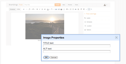 Hace ya un tiempo que se agregó las funciones de alt y title en el editor de entradas de Blogger, de esta forma al subir una imagen se le pueden agregar estos atributos, que se usan para mejorar nuestro seo, pues la imagen subida en nuestra entrada puede aparecer Leer más…