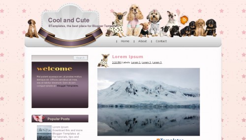 Cool and Cute es una excelente plantilla para Blogger de colores rosados y muy suaves y agradables a la vista, diseñada específicamente para las temáticas de mascotas o blogs infantiles y femeninos.