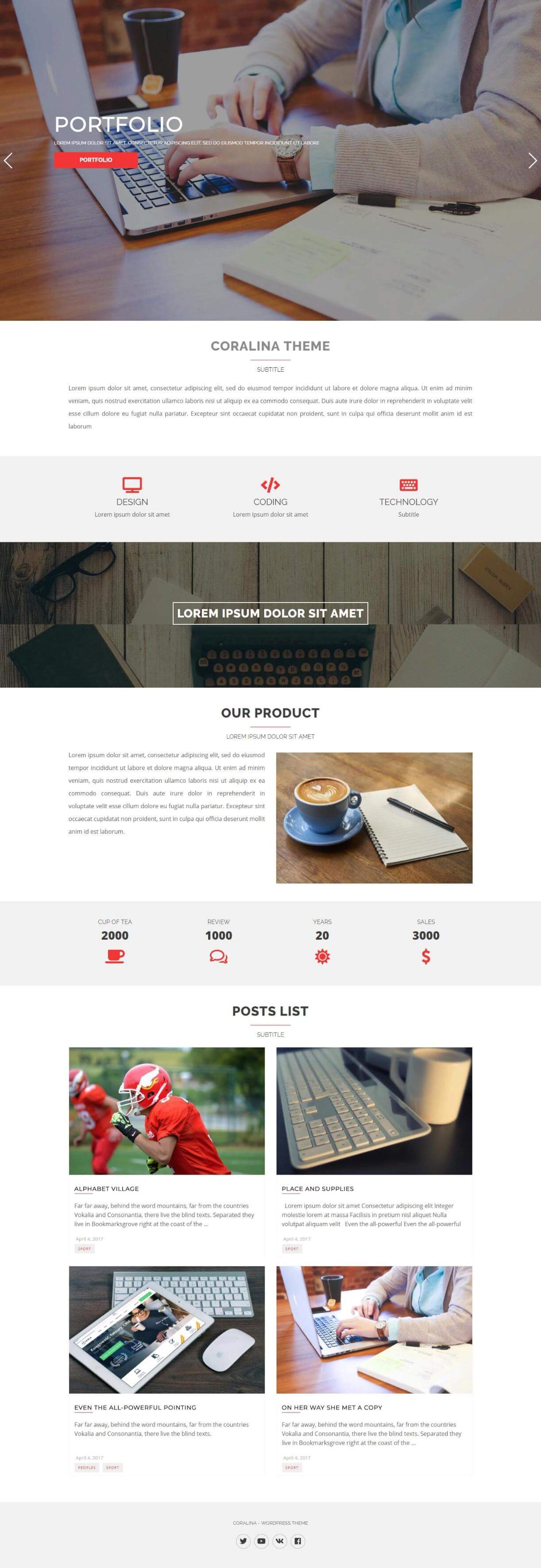 Coralina es un moderno theme para WordPress diseñado especialmente para temática de tipo empresarial y presentación de portafolios, aunque con algunos pequeños ajustes se puede adaptar a múltiples temáticas.