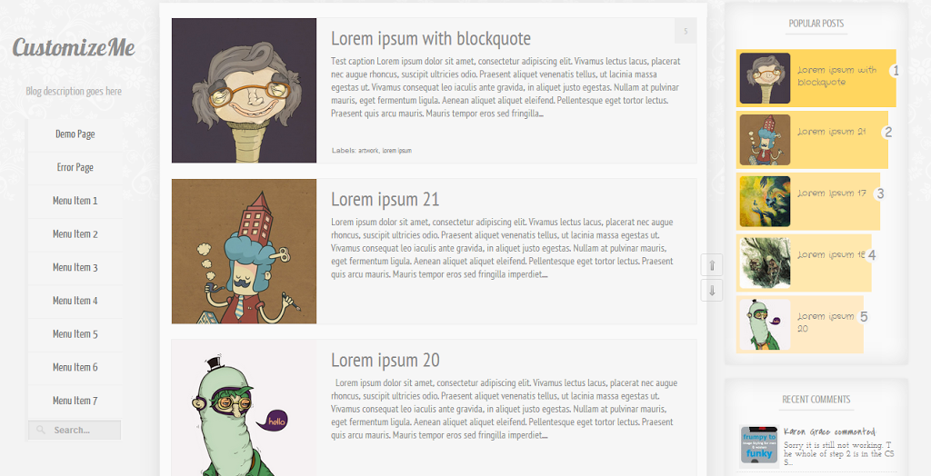 CustomizeMe es una muy buena plantilla para Blogger, con un alto porcentaje de personalización, además de estar altamente adaptada de cara al SEO, con lo que tu blog puede ser mas rápidamente indexado por Google y con ello ganar más visitas provenientes del buscador. Ha sido especialmente diseñada para aquellas personas que no manejan muy bien el código de Blogger, pues puede ser personalizada fácilmente desde el diseñador de Plantillas de Blogger.