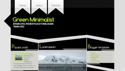 Green Minimalist es una excelente plantilla para Blogger de colores oscuros y multiples efectos logrados gracias a una serie de scripts que le dan a la plantilla un toque muy elegante.