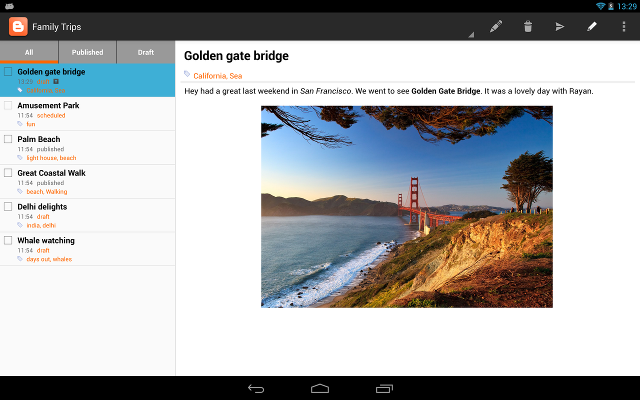 Con la aplicación Blogger para Android puedes publicar entradas en un momento estés donde estés.