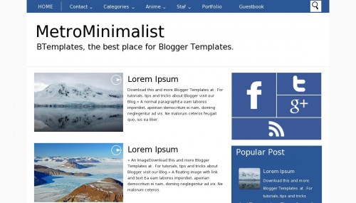 Metro Minimalist es una excelente plantilla para Blogger, que como su nombre lo indica tiene un diseño minimalista bastante enfocado con el diseño de Windows 8.