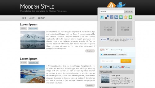 Modern Style es una espectacular plantilla para Blogger, tiene dos columnas, ha sido adaptada de WordPress, esta plantilla posee un diseño muy vanguardista, elegante y moderno.