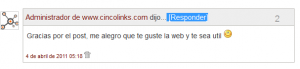 Este es un truco bastante practico ya que si queremos citar y responder a un comentario en especial,al hacer click en «Responder» automáticamente se escribirá un código en el formulario de comentarios con el link del usuario al que le quieres responder.
