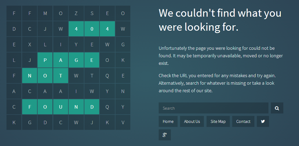 Wordsearch es un diseño de página de error limpio, moderno y profesional.