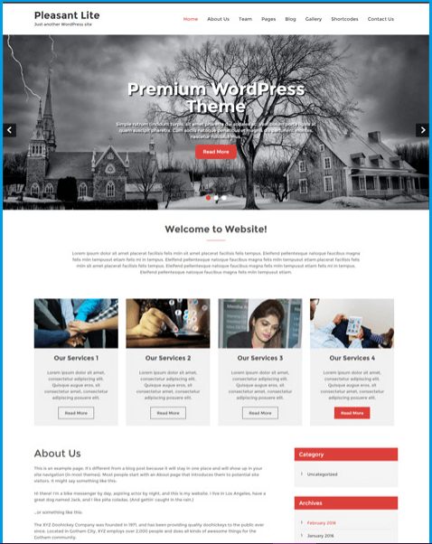 Pleasant es un tema premium de WordPress gratuito diseñado y desarrollado para diferentes necesidades. Este limpio y hermoso tema gratuito de WordPress te permite mostrar todo sobre tu negocio. Este tema se creó para promocionar tu negocio y para obtener más clientes para tu empresa. Es un tema de WordPress altamente personalizable que le permite crear un sitio web profesional único y hermoso sin ningún conocimiento de codificación.