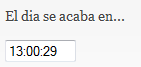 <input type="text" size="7" name="tiempo" value="mm:hh:ss" title="Tiempo restante para finalizar el día" />
