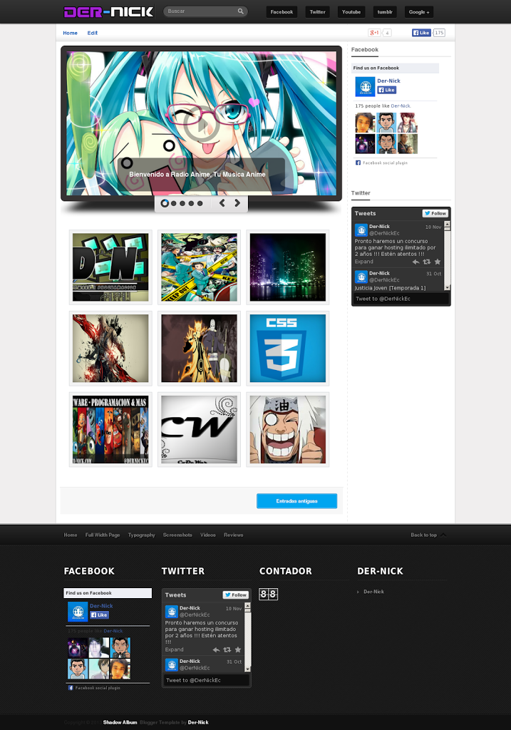 La plantilla se llama Shadow Album, esta es una espectacular e impresionante plantilla para Blogger inspirada en el anime, tiene muchos detalles que la hacen una plantilla premium.