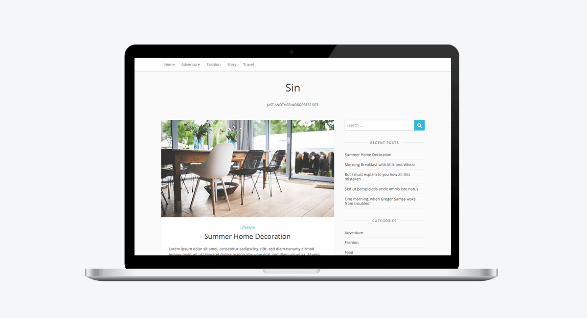 Sin es un nuevo theme para WordPress, con un diseño simple y limpio, que ofrece elegancia basada en tonos suaves, como el azul celeste, para darle a los lectores de tu sitio web una vista agradable, en otras palabras es un theme minimalista enfocado a funcionar de forma óptima en dispositivos móviles.
