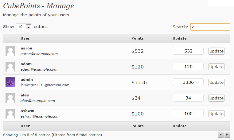 El plugin que agrega la funcionalidad de sistema de puntos en WordPress, es Cubepoint.