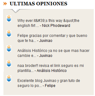 Hace poco implemente en el blog un sistema de últimos comentarios que se logran mediante el Feed,pero la particularidad es que le he agregado un icono de persona muy atractivo y hoy os quiero compartir el truco con vosotros.